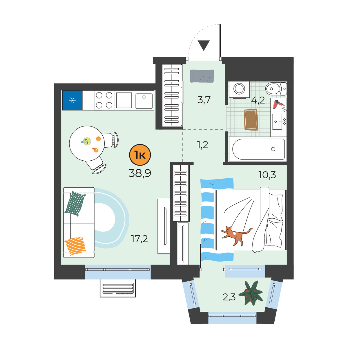 - Площадь38.9 м2