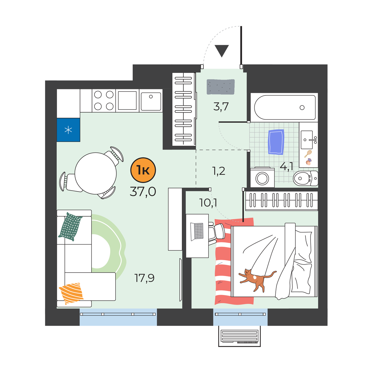 Площадь37 м2