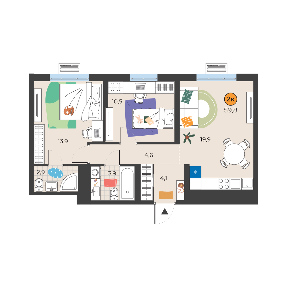 - Площадь59.8 м2