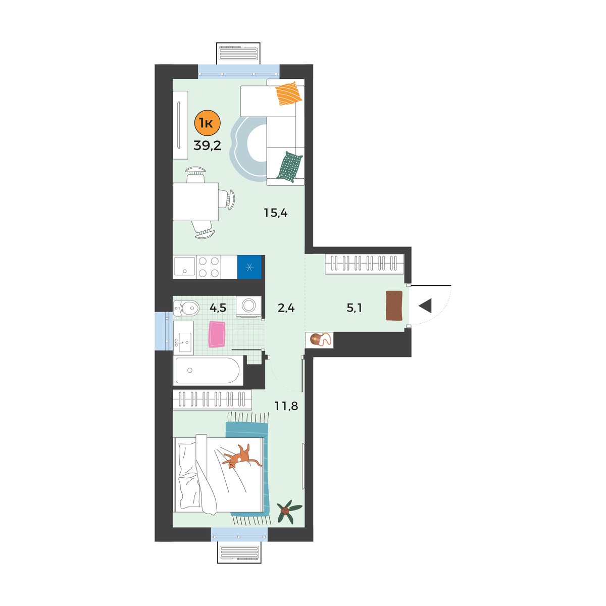 - Площадь39.2 м2