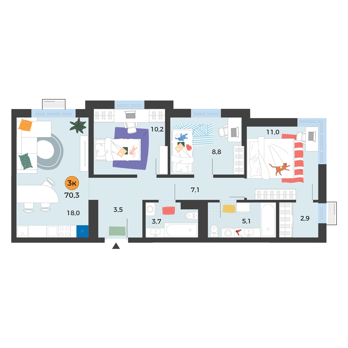 3-комнатная квартира 70.3 м2