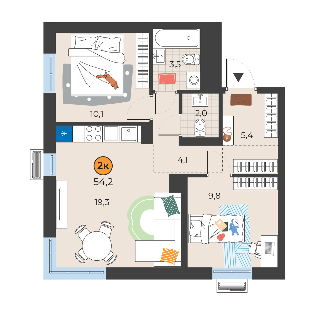 2-комнатная квартира 54.2 м2
