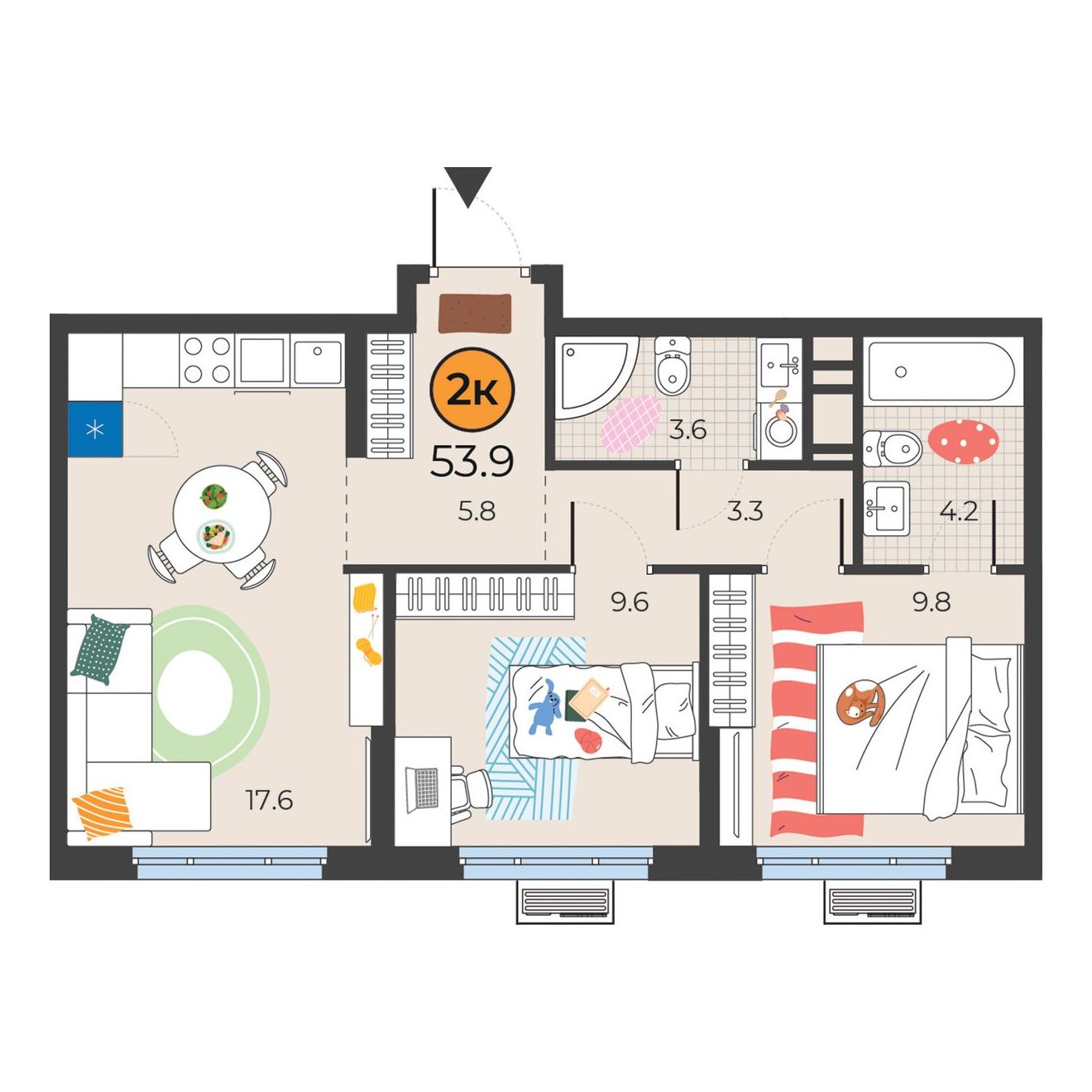 2-комнатная квартира 53.9 м2