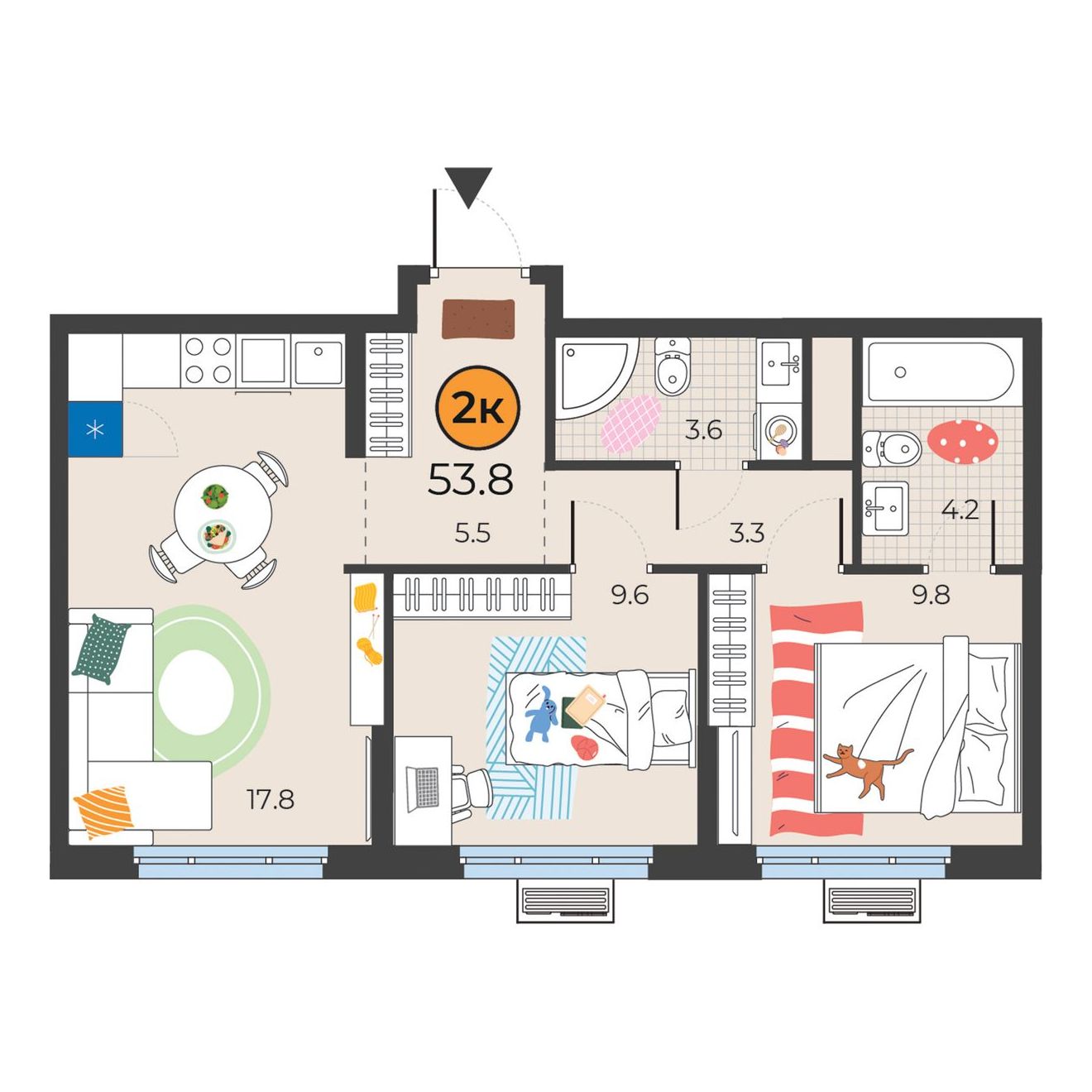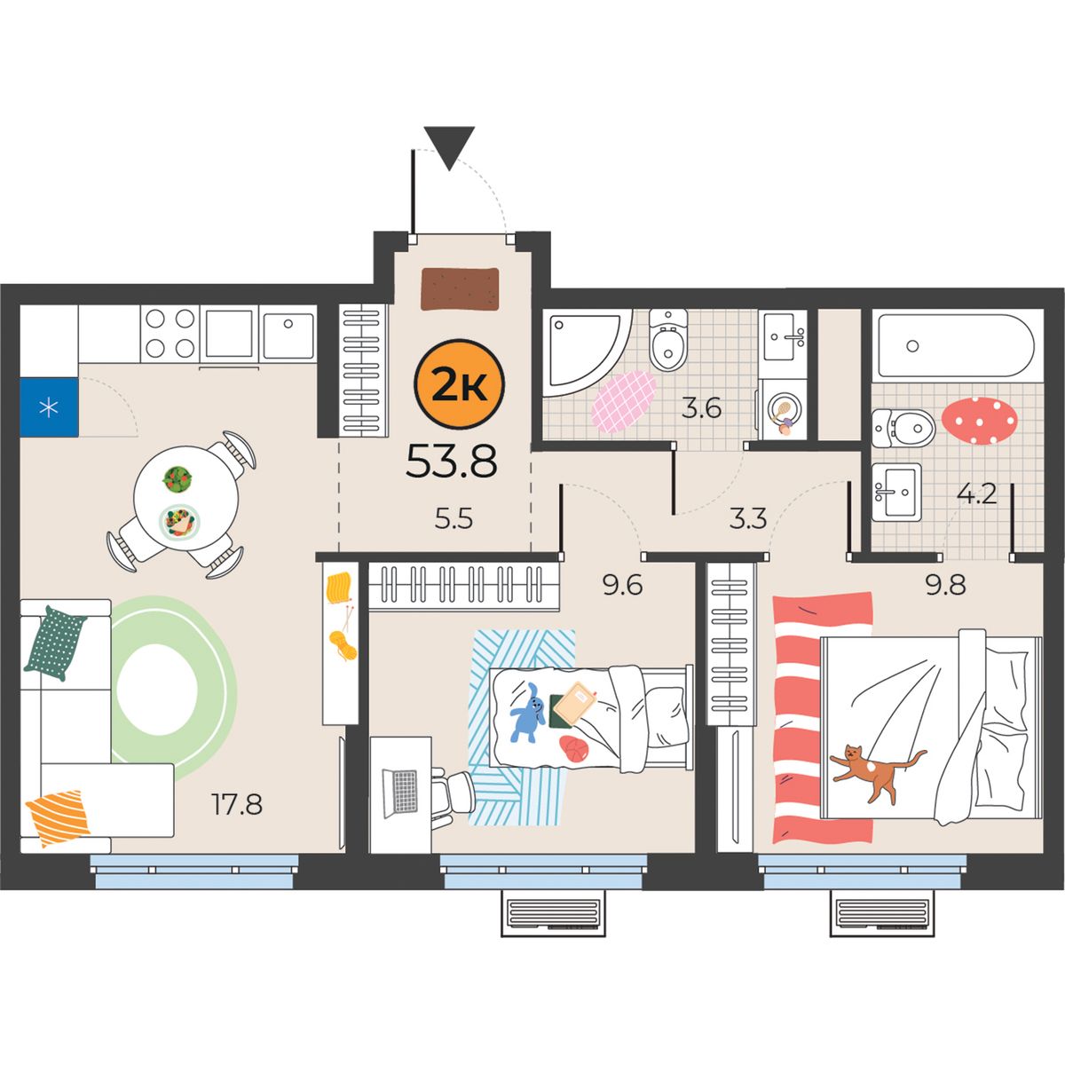 2-комнатная квартира 53.9 м2