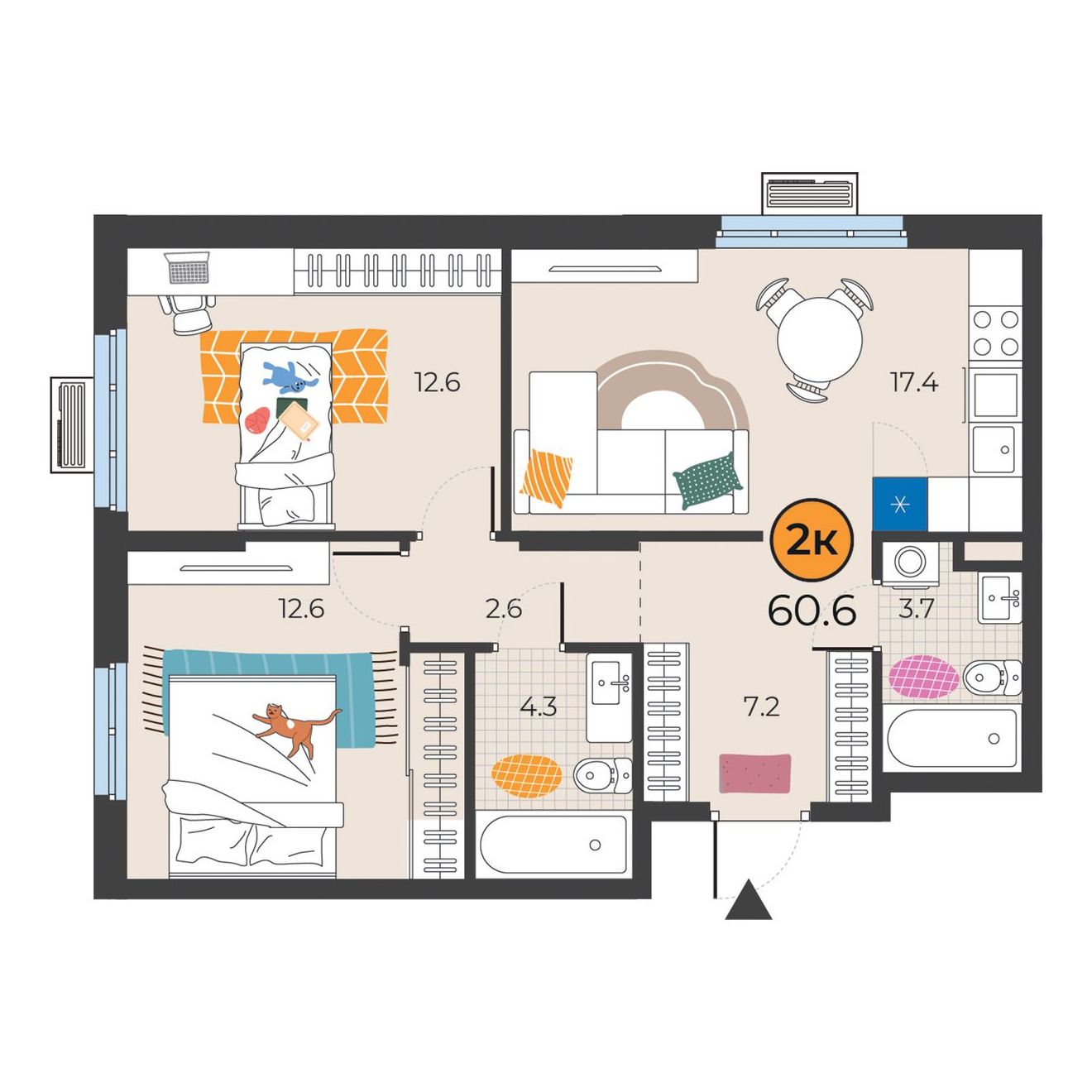 2-комнатная квартира 60.4 м2