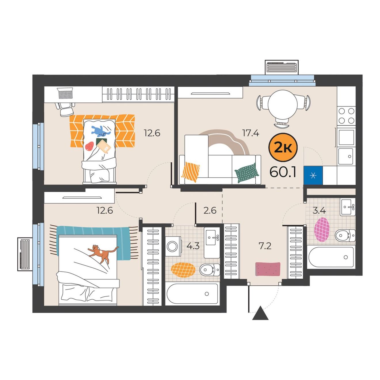 2-комнатная квартира 60.1 м2