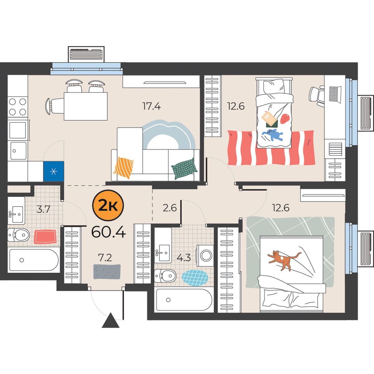 2-комнатная квартира 60.4 м2
