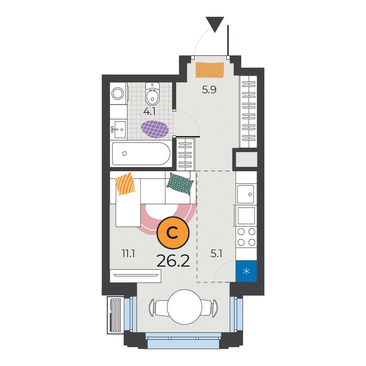 Студия 26.2 м2