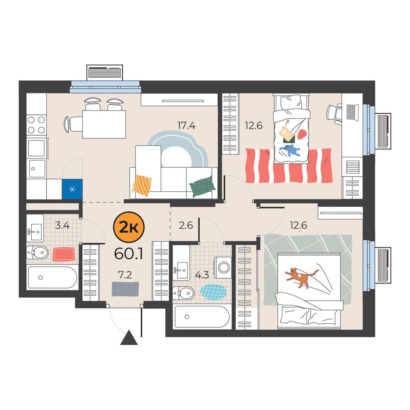 2-комнатная квартира 60.1 м2