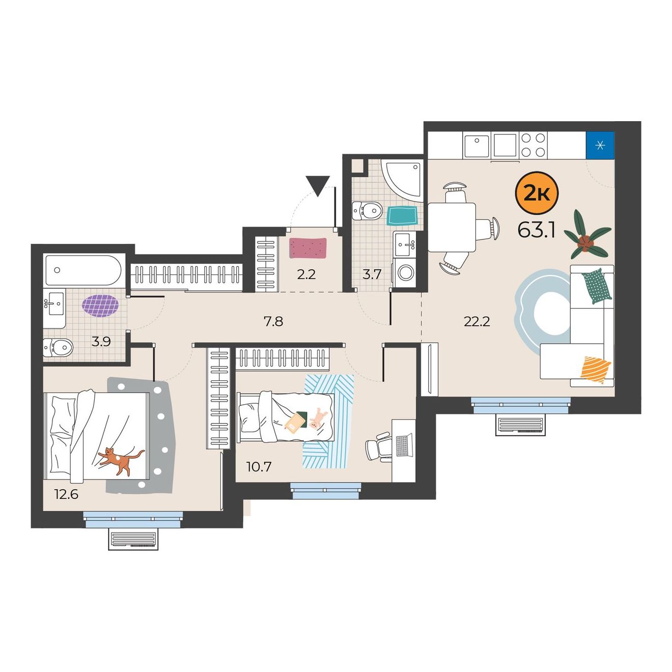 2-комнатная квартира 63.1 м2