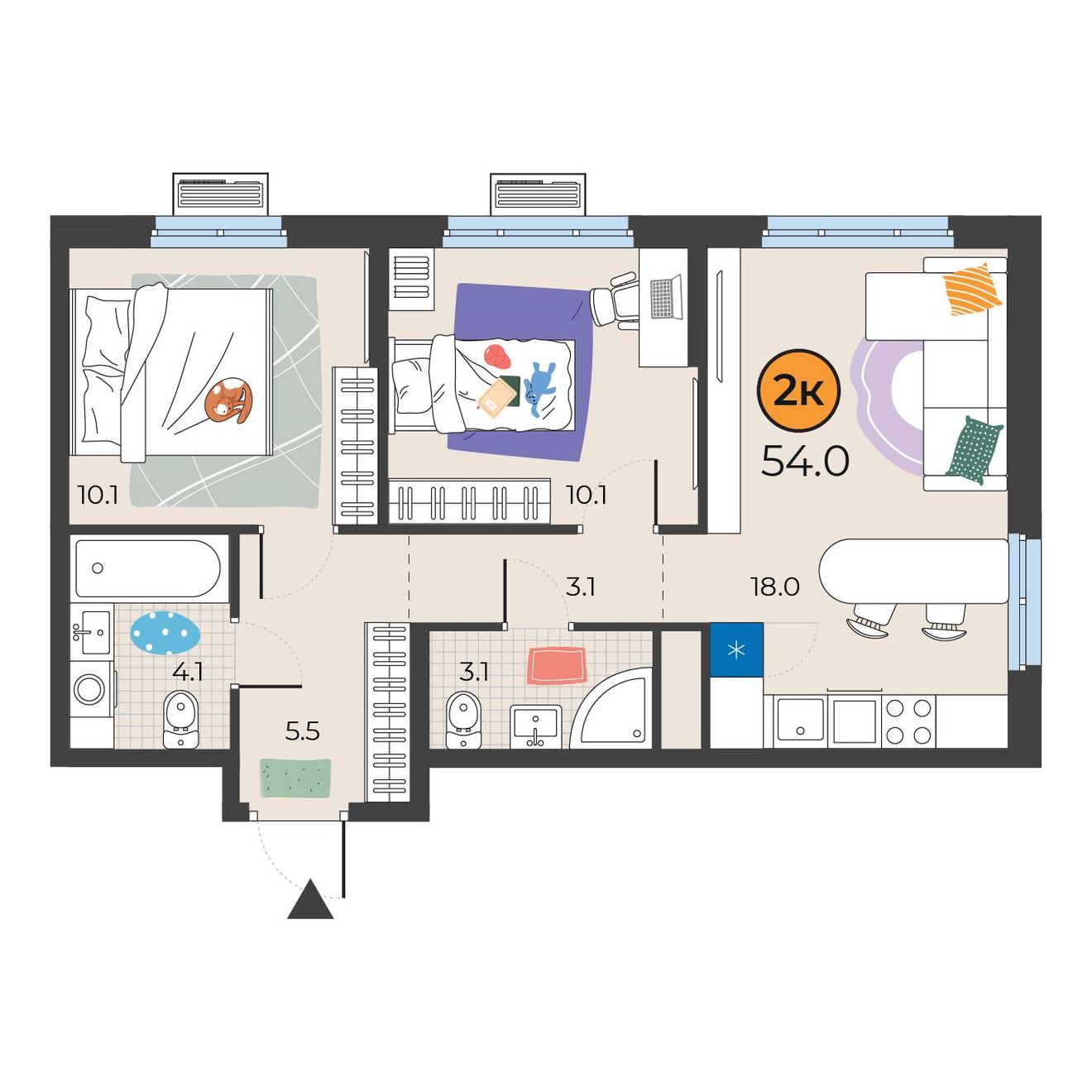 2-комнатная квартира 54 м2