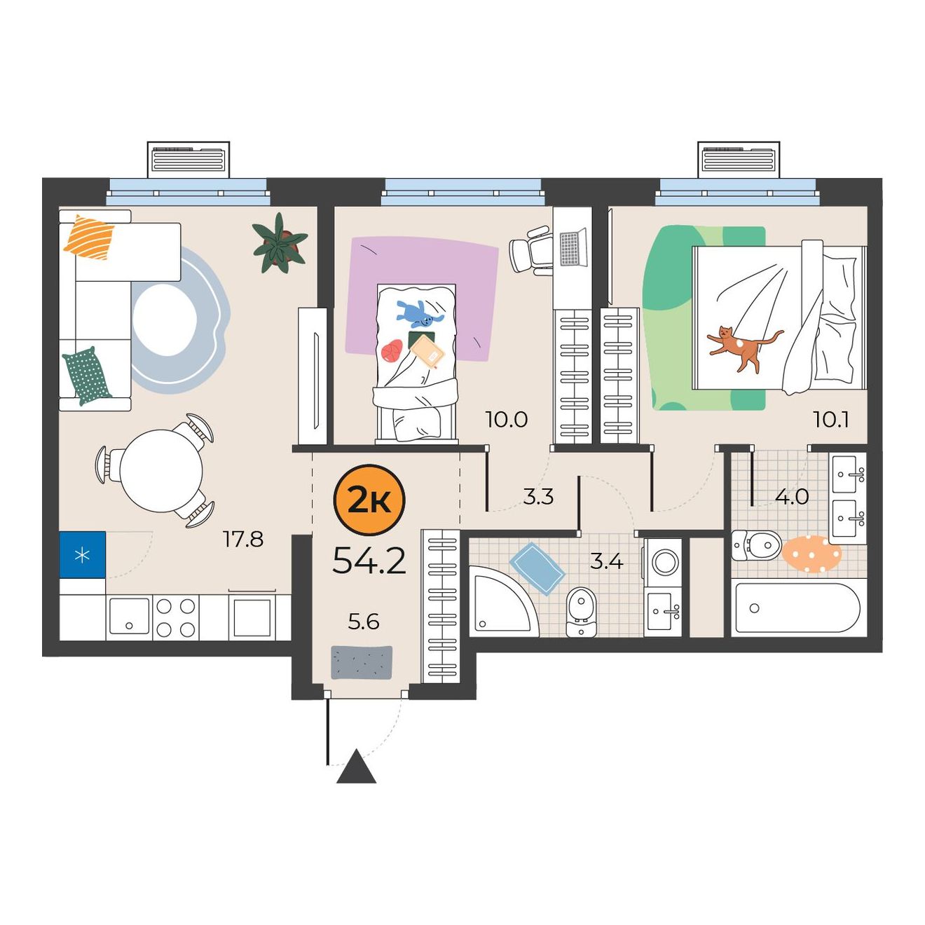 2-комнатная квартира 54.2 м2