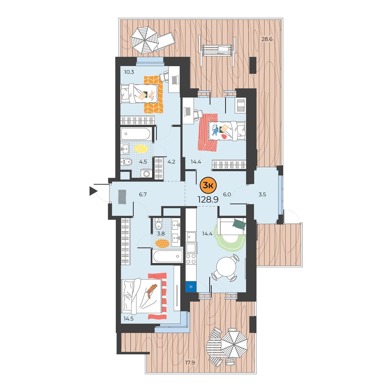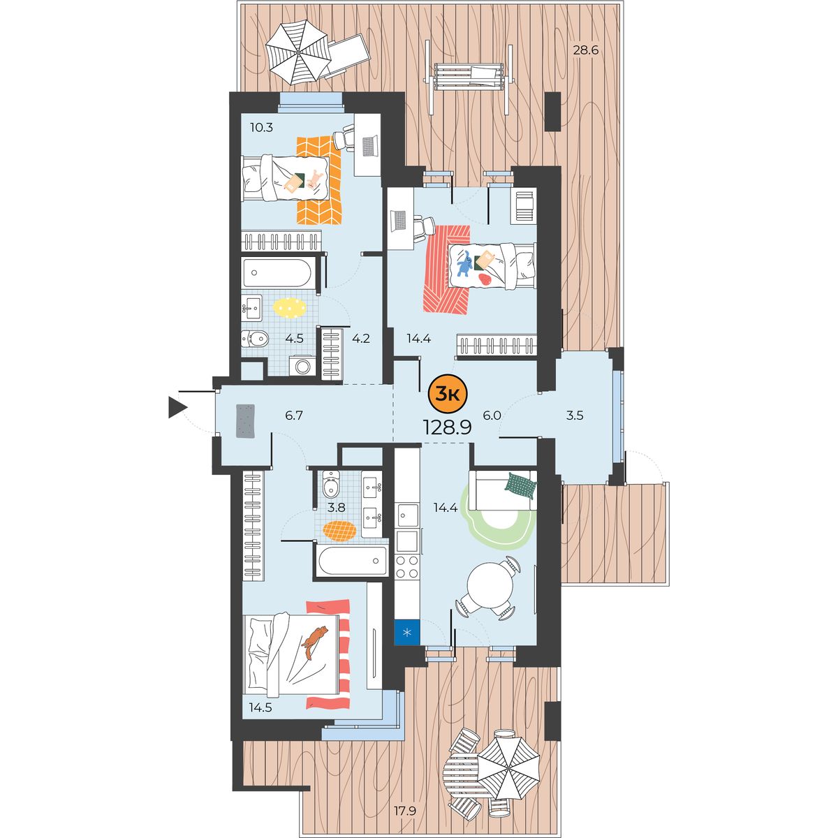 3-комнатная квартира 96.3 м2