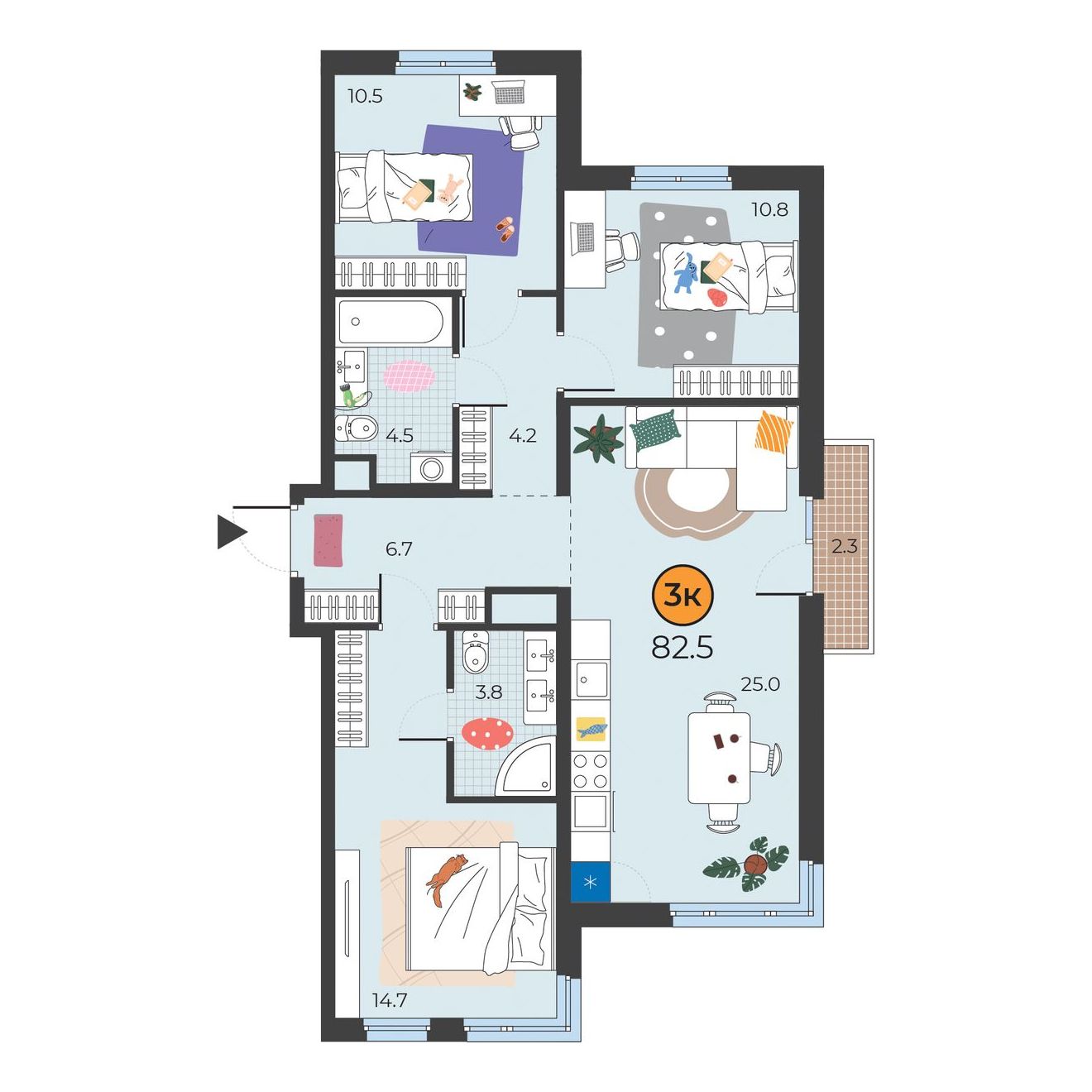 3-комнатная квартира 81.4 м2