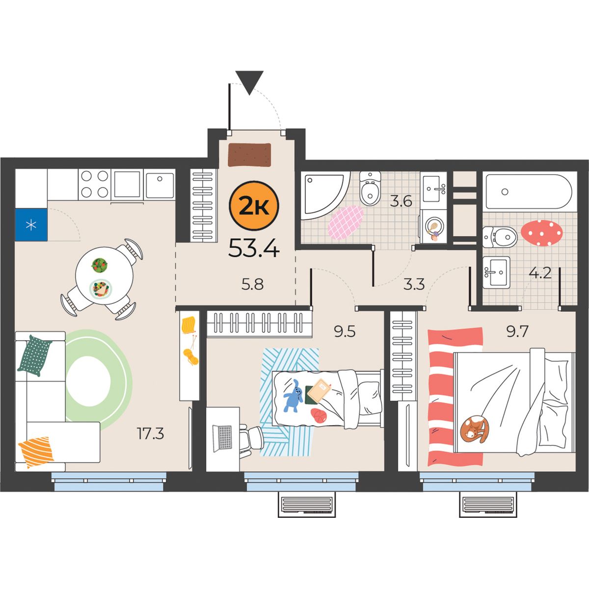 2-комнатная квартира 53.4 м2