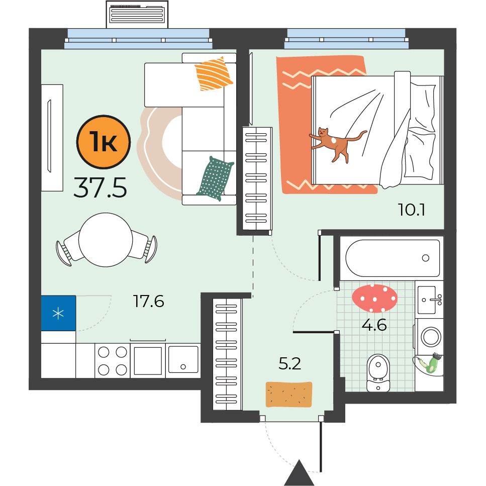 - Площадь37.5 м2