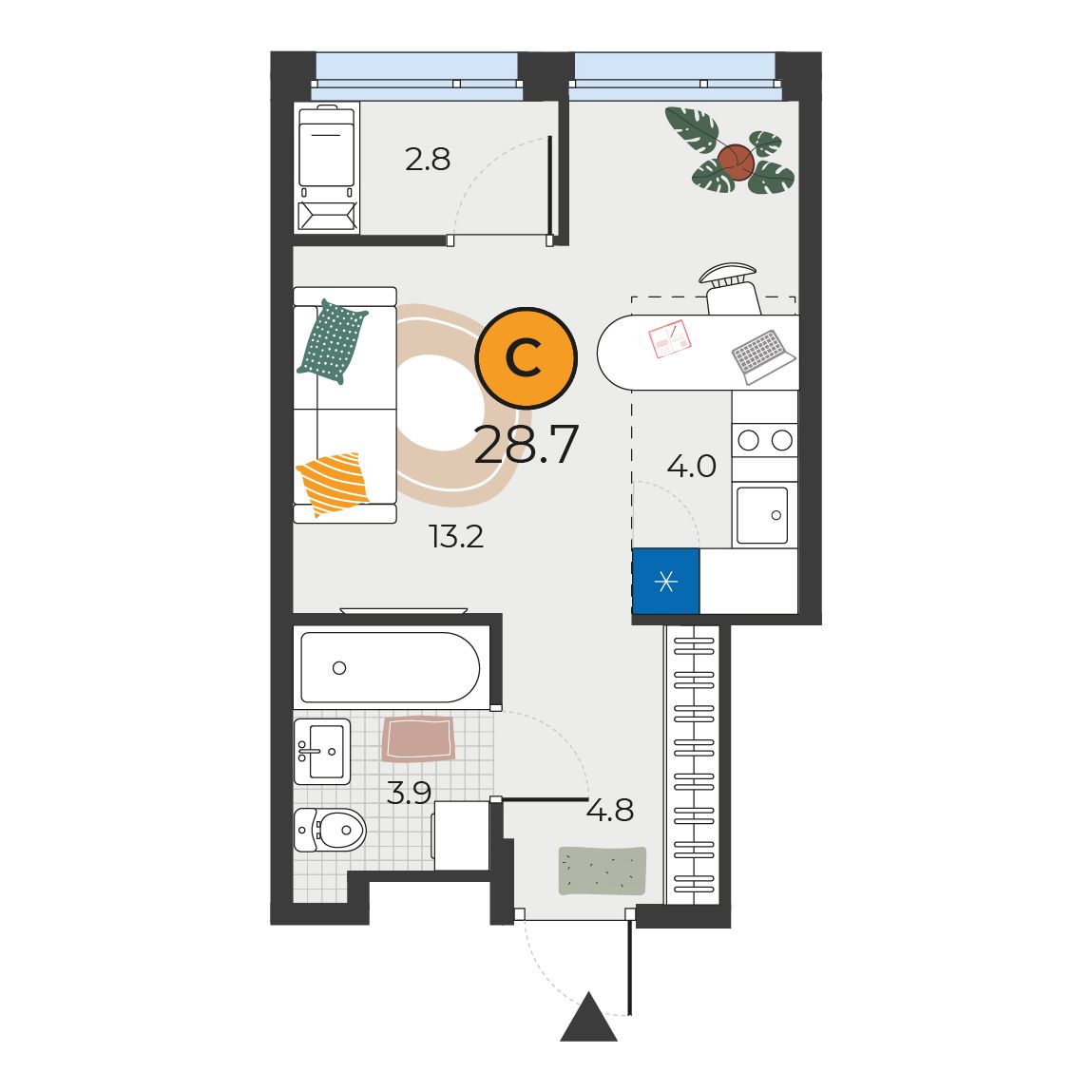 Студия 28.7 м2