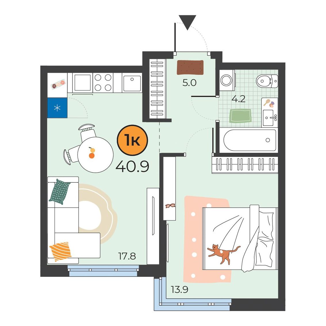 - Площадь40.9 м2