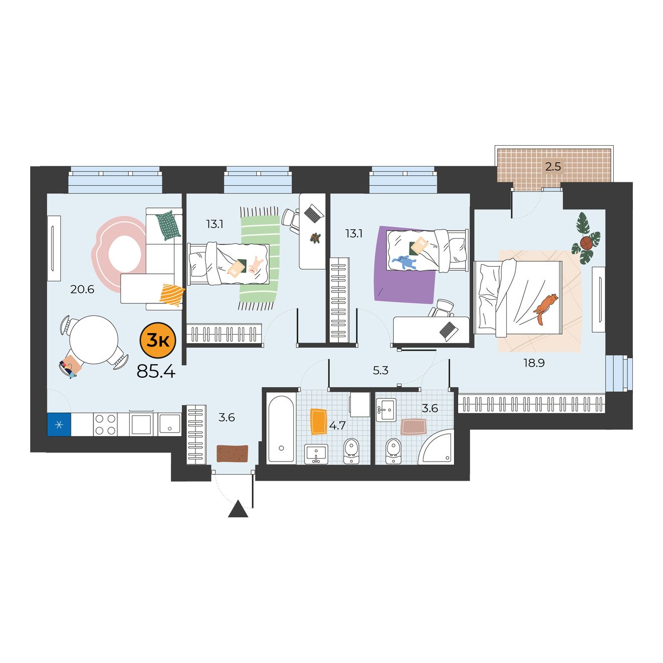 3-комнатная квартира 85.4 м2