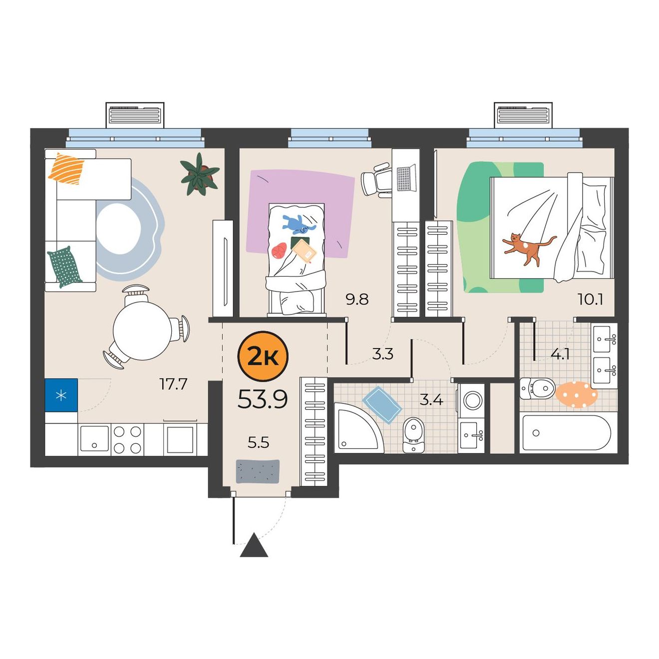 2-комнатная квартира 53.9 м2
