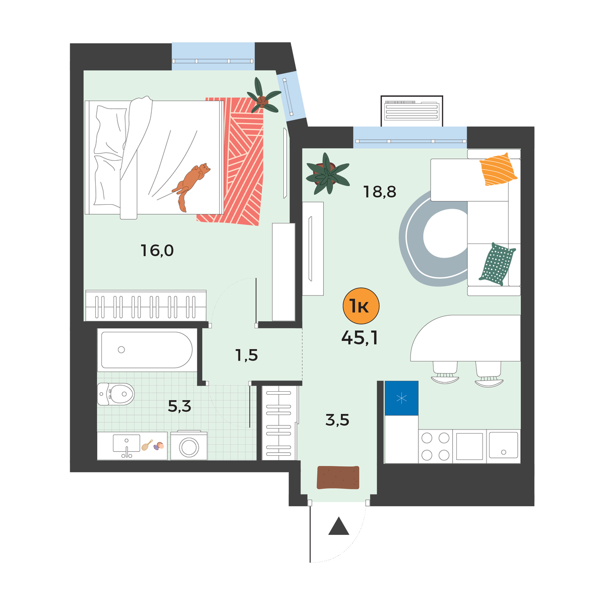 Площадь45.1 м2