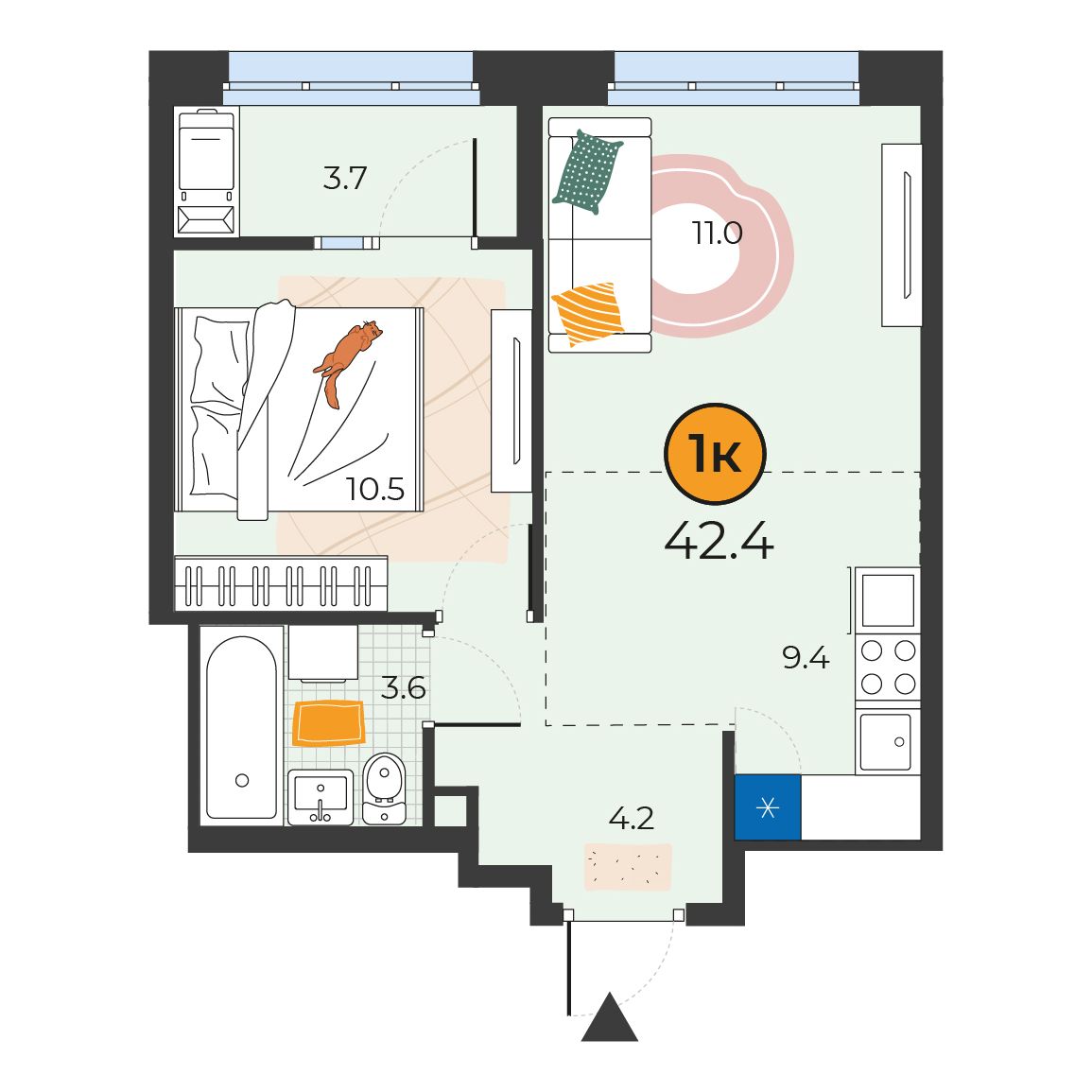 1-комнатная квартира 42.4 м2