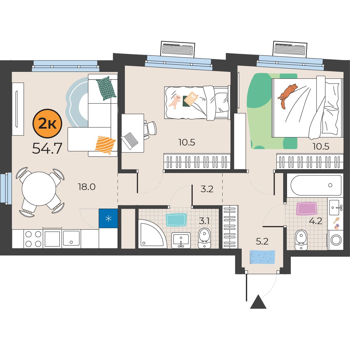 2-комнатная квартира 54.7 м2