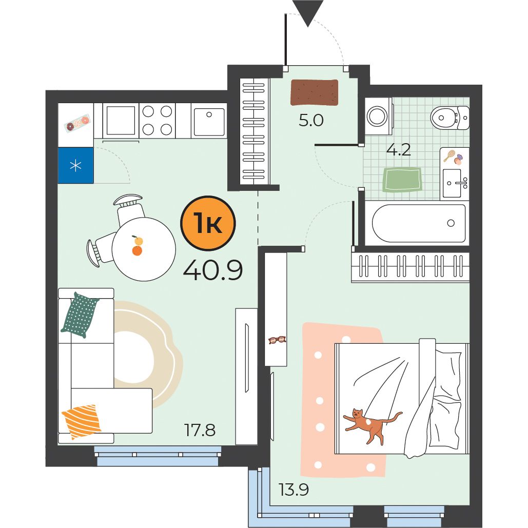 1-комнатная квартира 40.9 м2