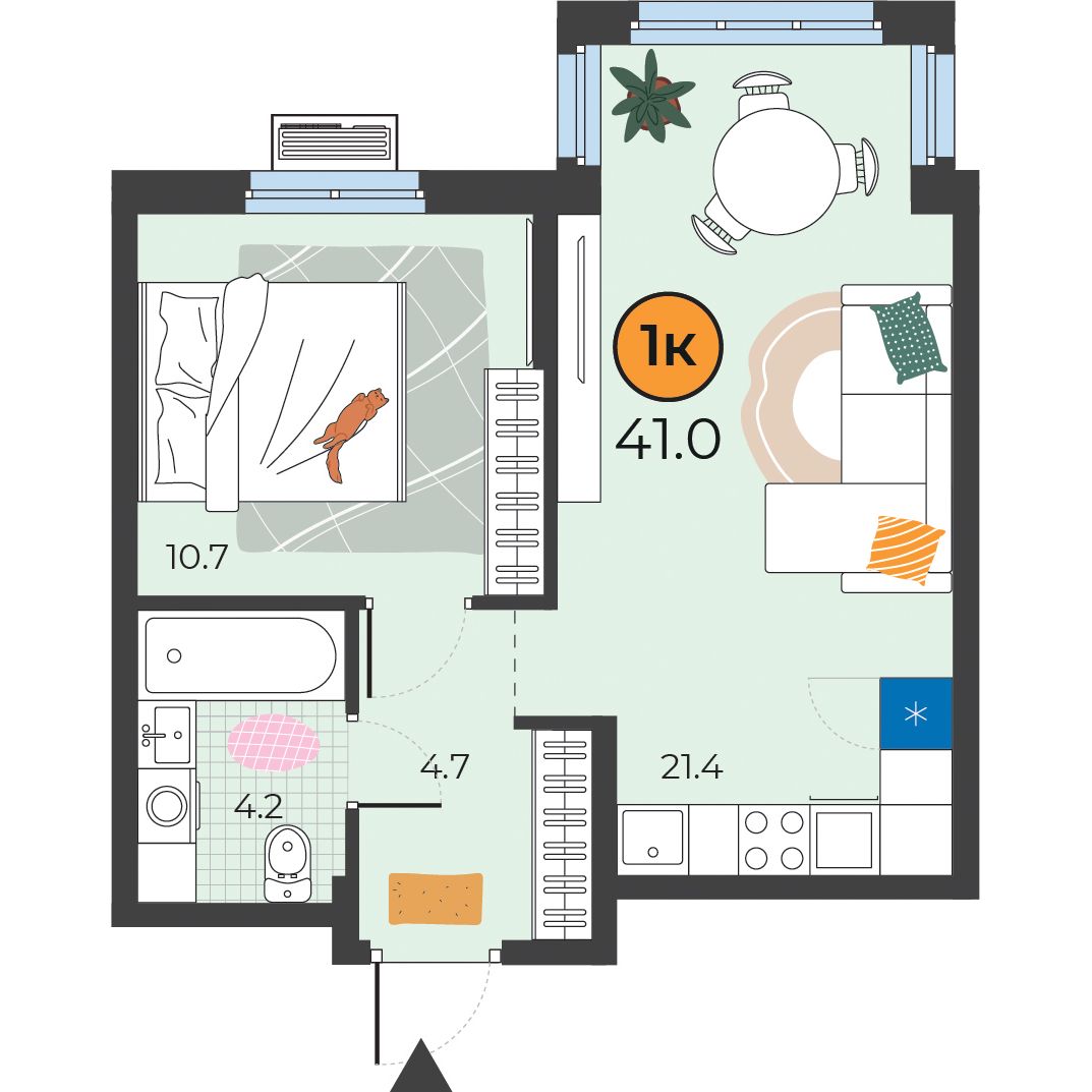 1-комнатная квартира 41 м2