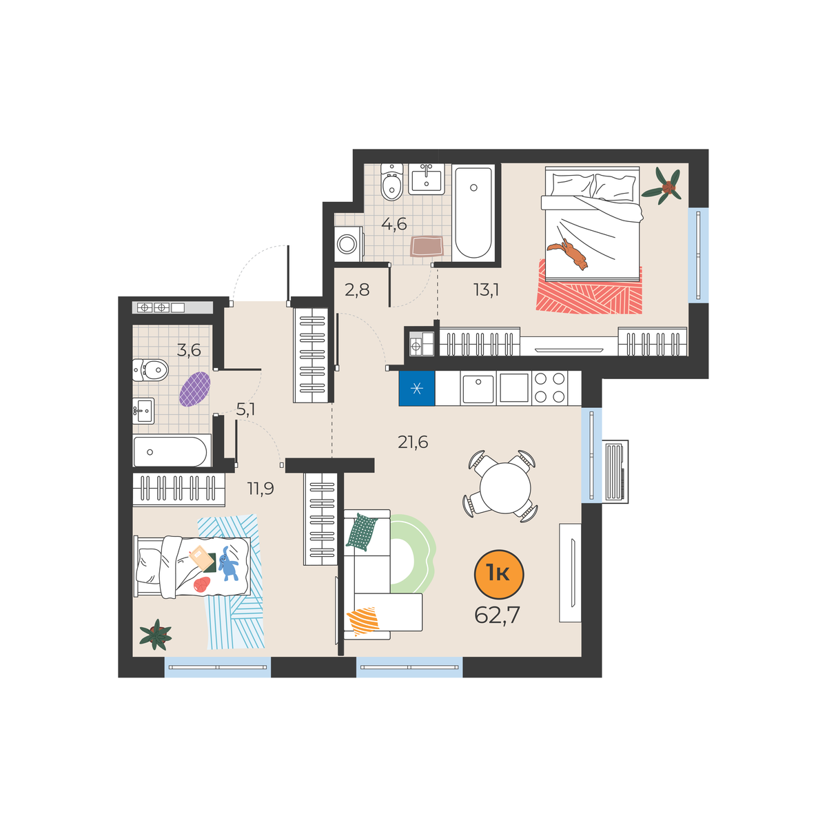2-комнатная квартира 62.7 м2