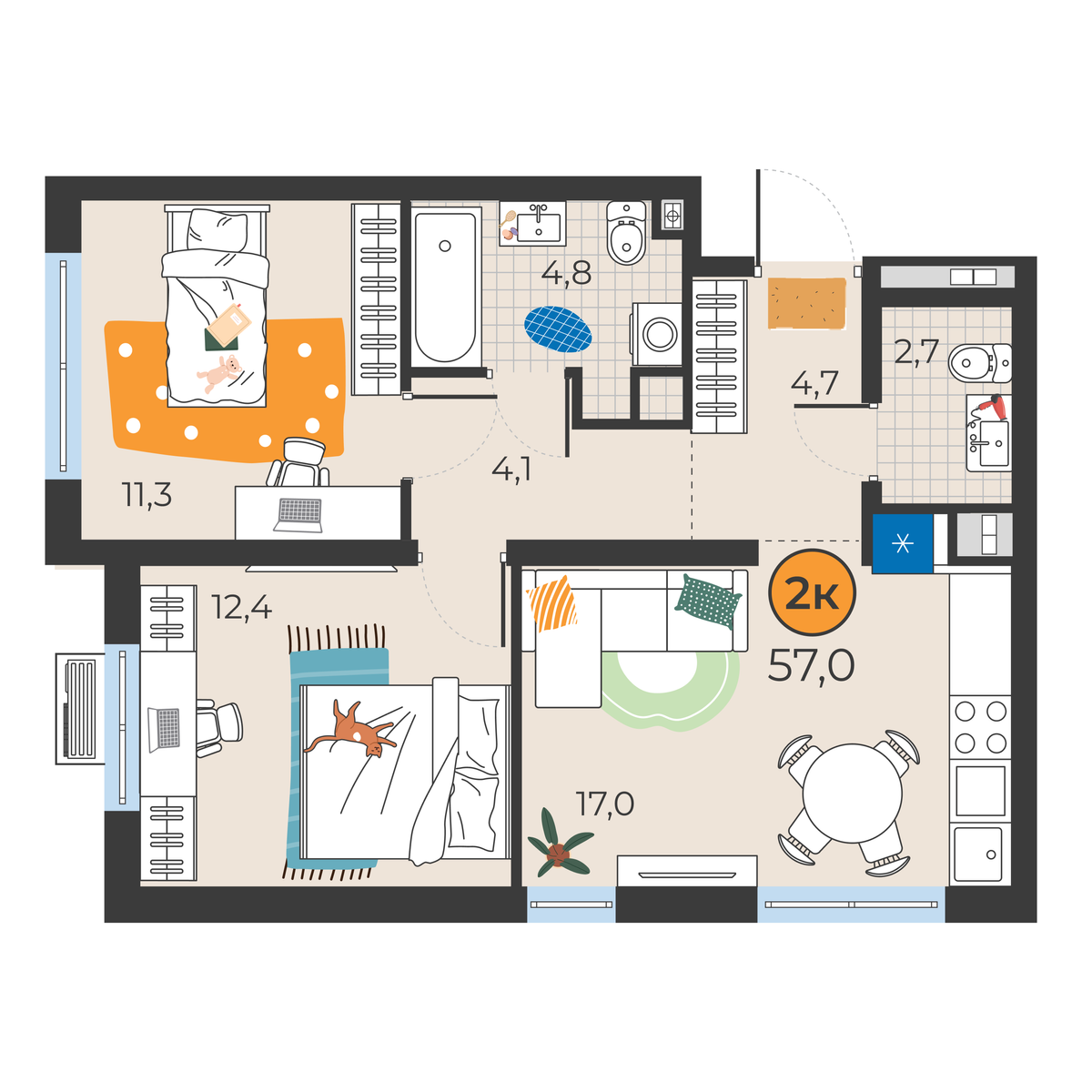 2-комнатная квартира 57 м2