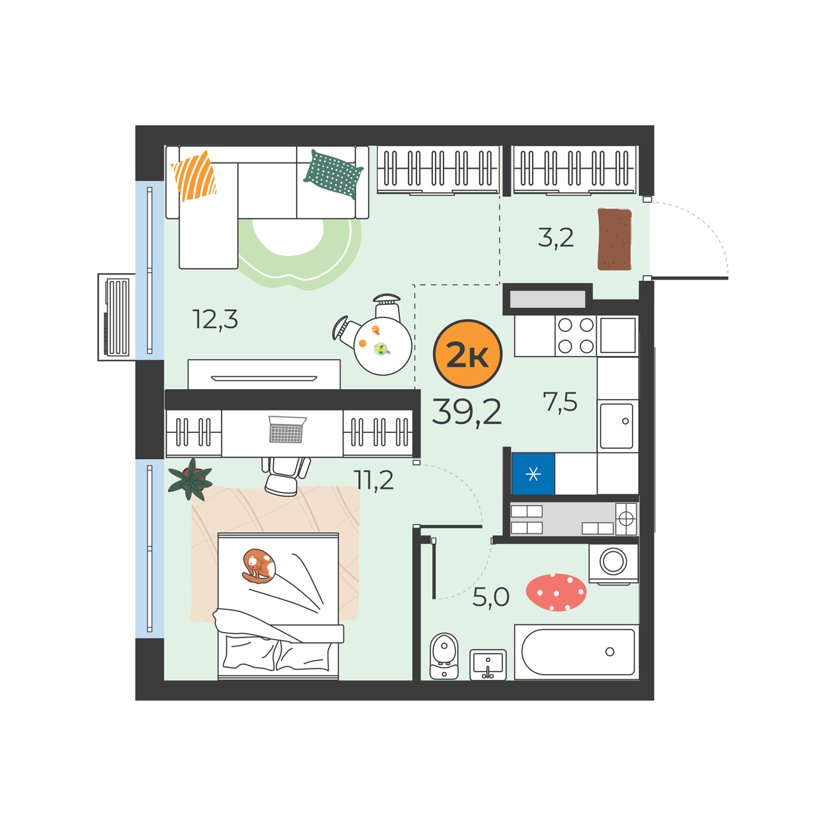- Площадь39.2 м2