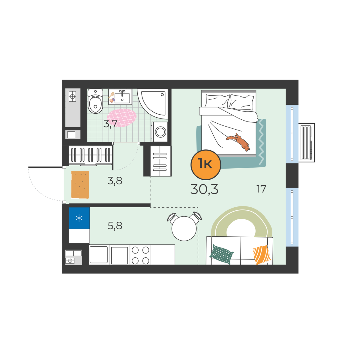Студия 30.3 м2