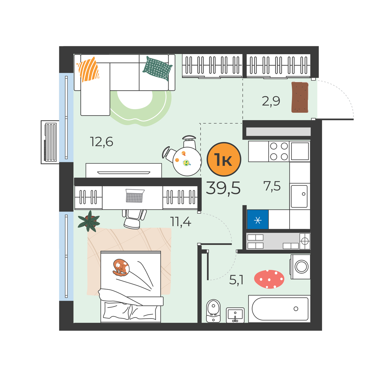 - Площадь39.5 м2