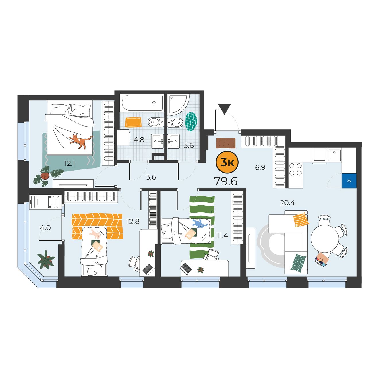 3-комнатная квартира 79.6 м2
