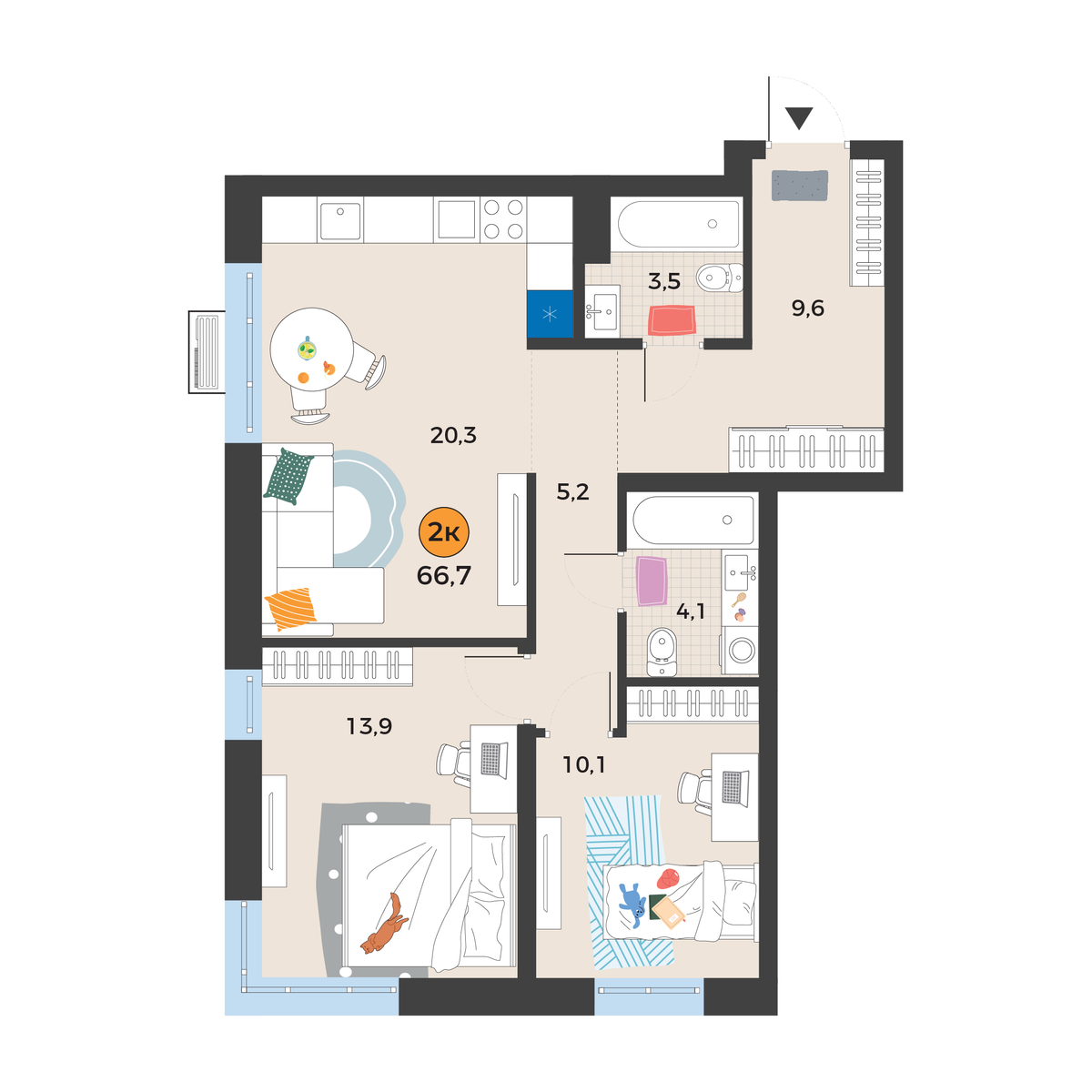 2-комнатная квартира 66.7 м2