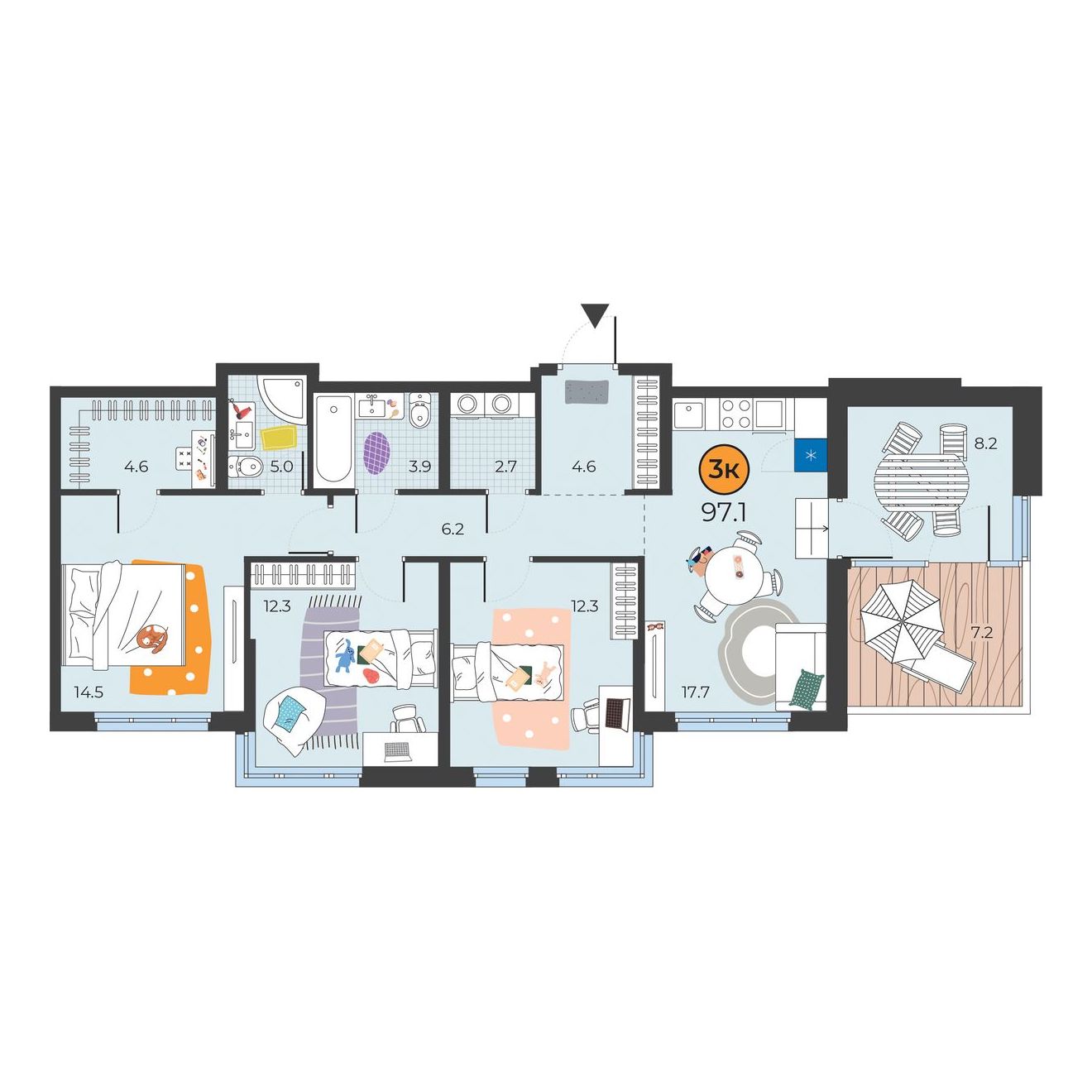 3-комнатная квартира 92.1 м2