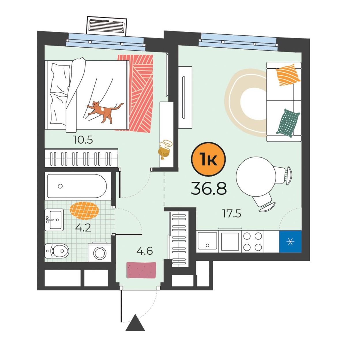 - Площадь36.8 м2