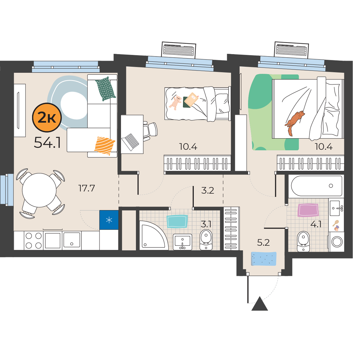 2-комнатная квартира 54.1 м