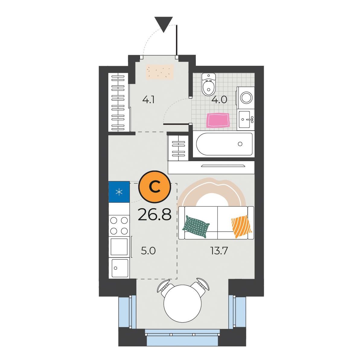 - 26.8 м2
